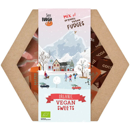 6655 leiPreț unitar /IndisponibilCutie cadou de Craciun cu caramele asortate, bio, 195g, Super Fudgio