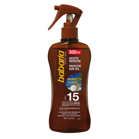 5892 leiPreț unitar /IndisponibilUlei protectie solara SPF15 & accelerator bronzare tip spray, Monoi Tahiti, Babaria, 300 ml