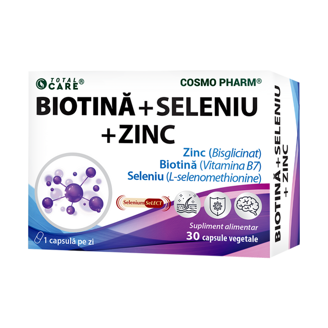 Biotina + Seleniu + Zinc, 30 capsule vegetale, Cosmopharm Acesta este în așteptare și va fi livrat imediat ce revine în stoc.